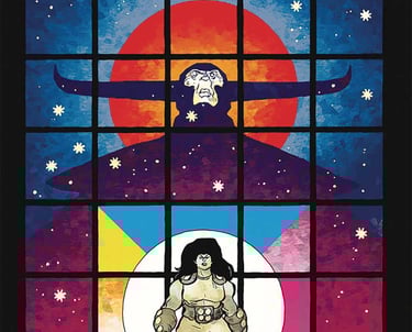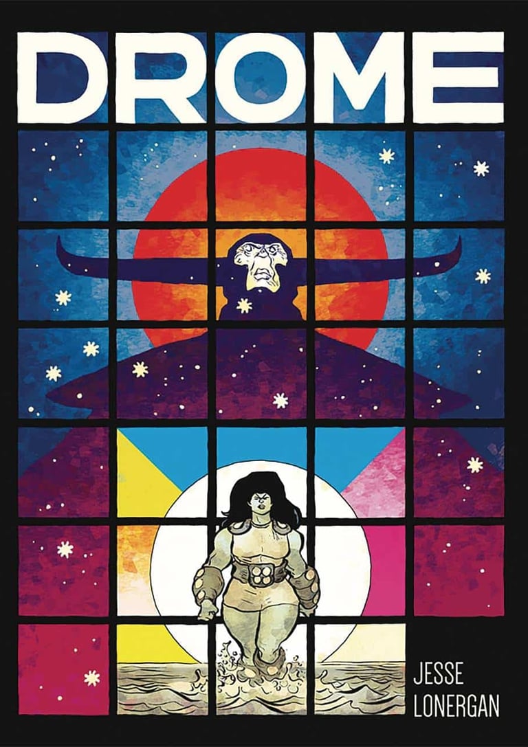 Dans Drome, Jesse Lonergan revisite le mythe originel en créant une odyssée visuelle où dieux capricieux et créatures colossales s’affrontent dans un décor à la fois primitif, baroque et épuré. L’auteur façonne un monde qui rappelle les fresques mythologiques tout en les dépouillant de leurs fioritures superflues, offrant ainsi un cadre à la fois grandiose et immédiatement lisible.