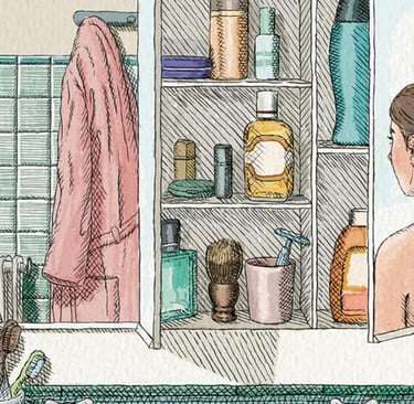 Ce qui retient l’attention, c’est la manière dont l’autrice évite les deux écueils du genre : la nostalgie complaisante et le catalogue d’anecdotes. Elle choisit au contraire une forme de distance douce, une observation patiente qui laisse affleurer l’émotion sans jamais la forcer. Les personnages, la mère attentive aux économies d’eau, la grand-mère dont on visite la maison, les compagnons dont les affaires envahissent peu à peu l’étagère, se dessinent par petites touches, dans ce qu’ils déposent du leur dans ce lieu partagé. Il y a là une intelligence discrète du récit : comprendre que l’intime ne se livre pas dans les confidences solennelles, mais dans l’agencement d’un flacon sur une tablette ou dans la persistance d’un rituel hérité.