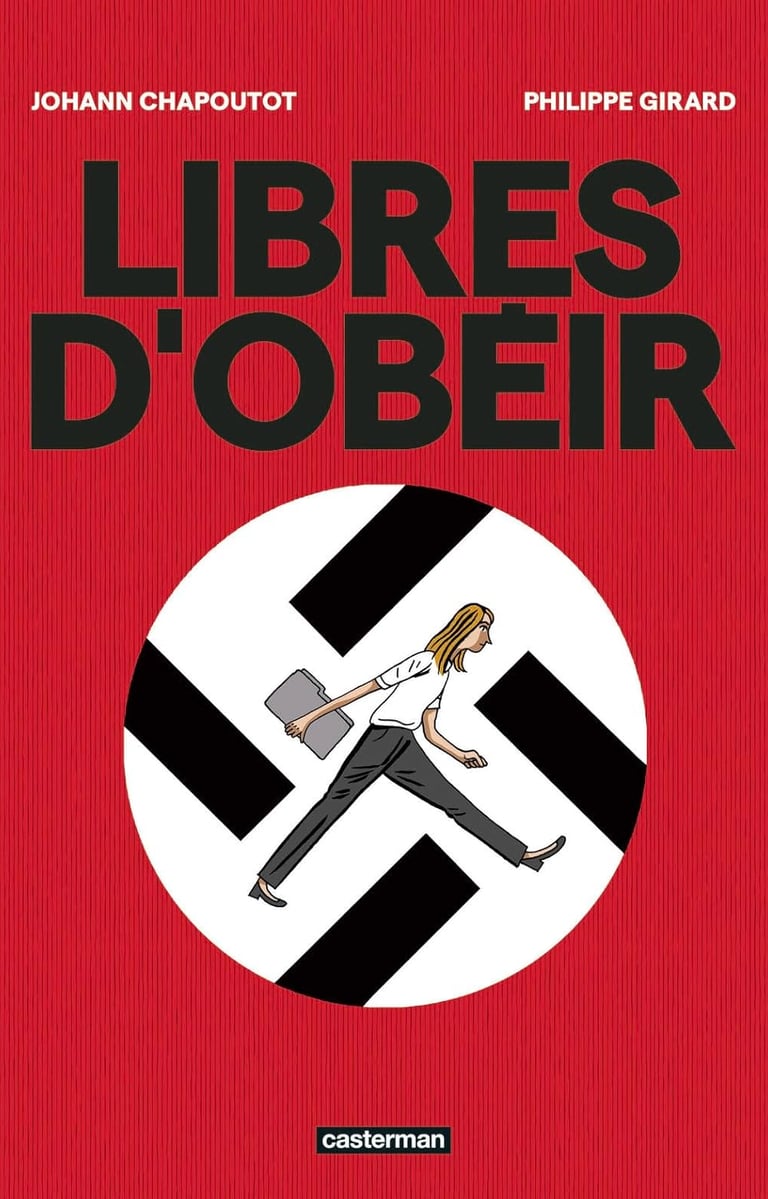 Libres d’obéir transforme l’essai de Johann Chapoutot en une bande dessinée percutante qui expose, à travers une typographie frappante et des illustrations contrastées, comment les théories managériales nazies ont infiltré les pratiques de direction modernes, offrant ainsi une dénonciation visuelle et intellectuelle d’une liberté d’obéissance illusoire.